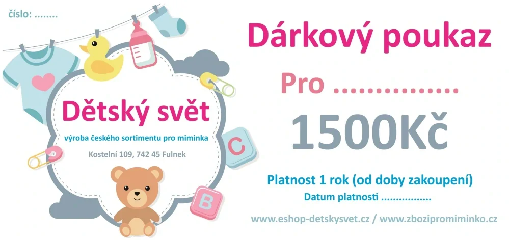 - Dárkový poukaz pro miminko 1500 Kč – ideální dárek jako hlavní dar 🎁