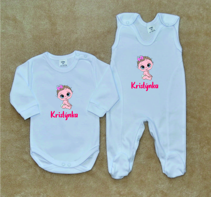Kojenecká soupravička obsahuje: kojenecké dupačky a body, které mají patentkové zapínání a propínání a velmi kvalitní a zdravotně nezávadný digitální obrázek a nápis.