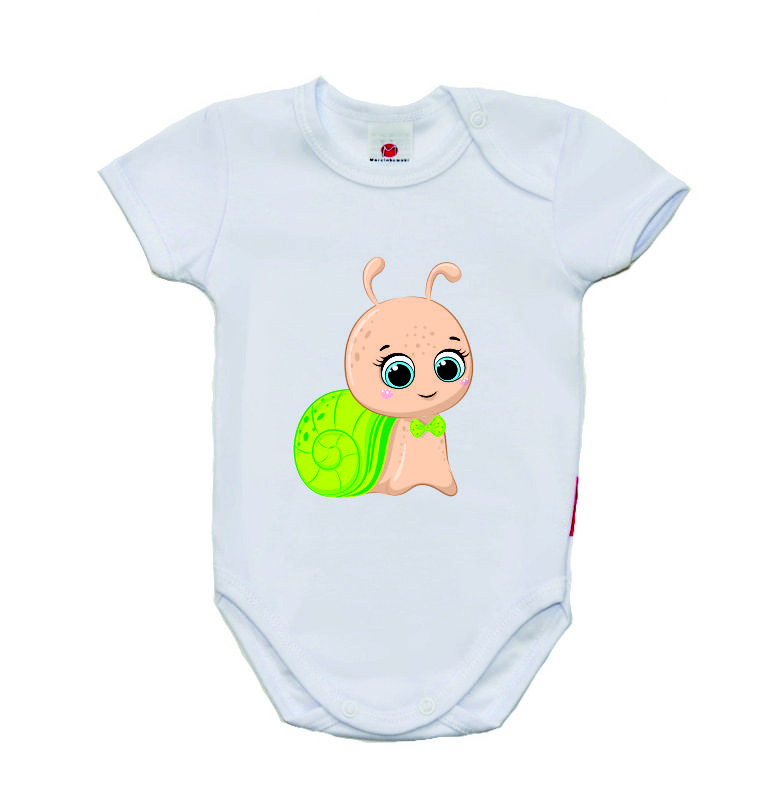 Dětské body, Gama, krátký rukáv a potisk roztomilého zeleného šnečka velikost 56