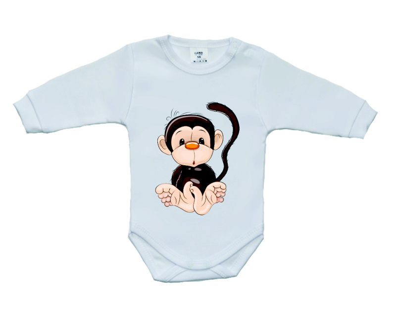 Kojenecké/dětské body s velkým obrázkem roztomilé opičky, je bavlněné kojenecké/dětské body s dlouhým rukávem, v bílé barvě s potiskem obrázku ve velkém provedení.