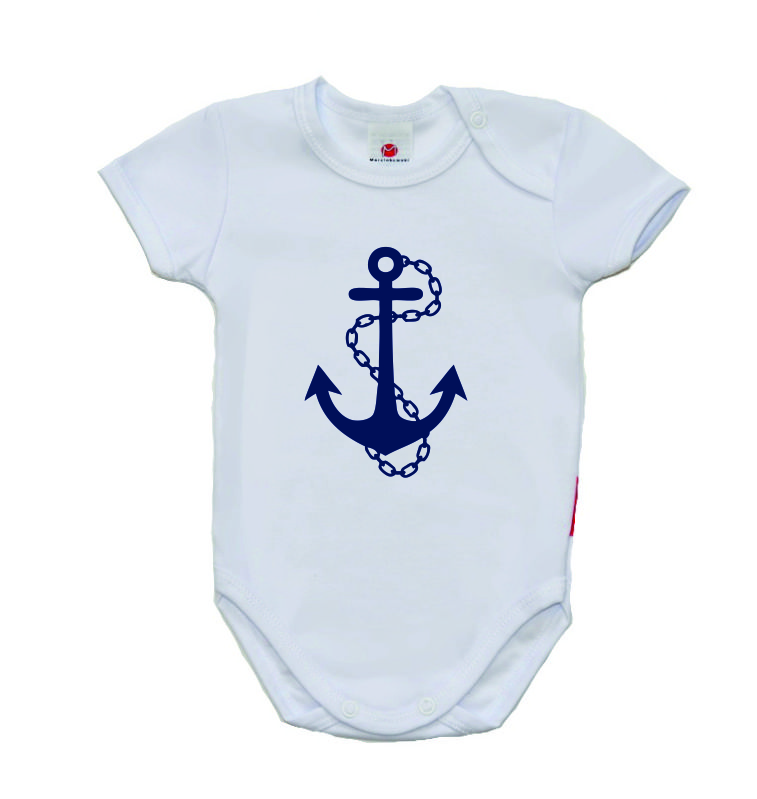 Kojenecké/dětské body bílé s krátkým rukávem a velkým obrázkem, kotva, je nádherné bavlněné, velmi příjemné dětské body s obrázkem ve velkém provedení.