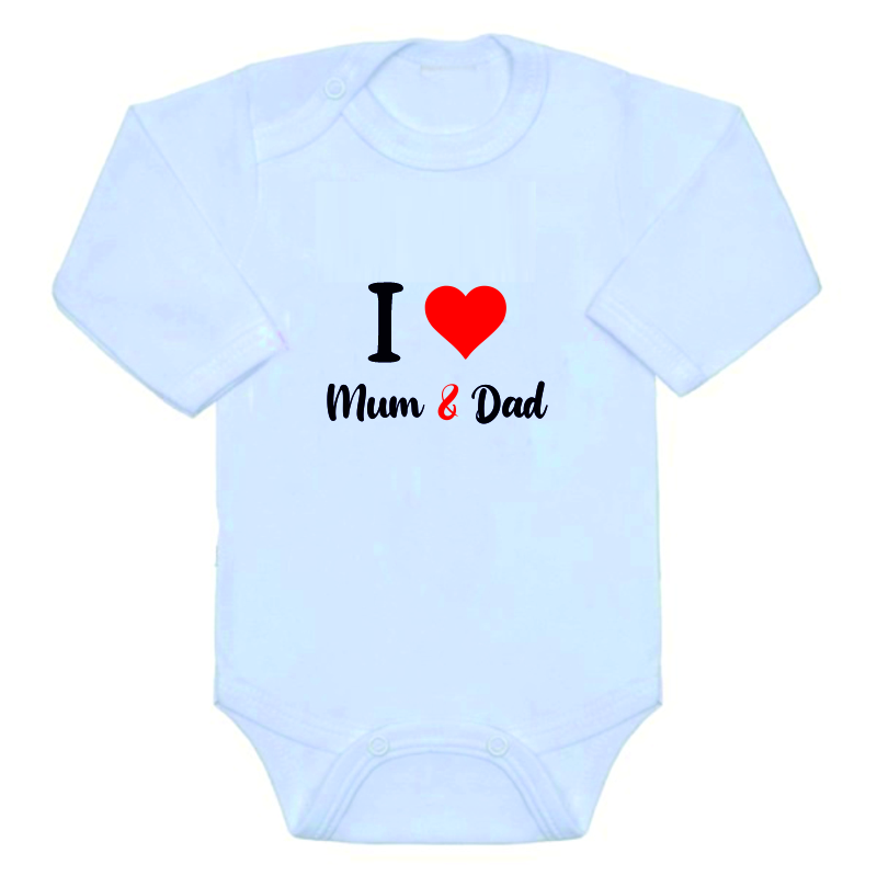 - Dětské body s nápisem New Baby I love Mum and Dad bílé velikost 62