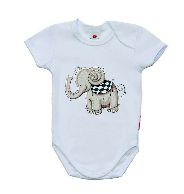 - Dětské body s potiskem a krátkým rukávem Gama roztomilý šedý slon velikost 74