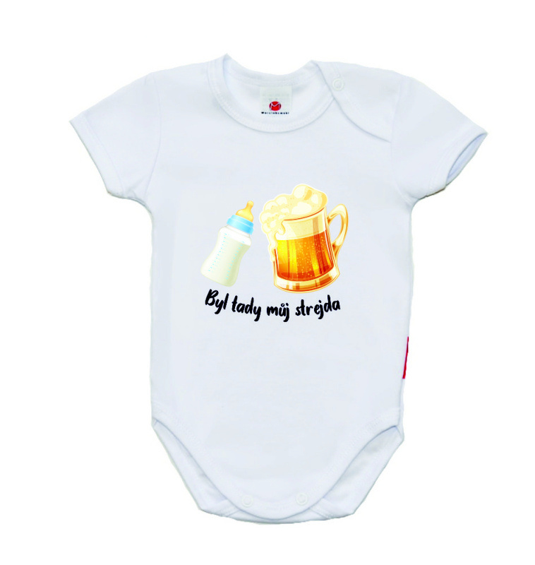 Dětské body s vtipným potiskem, Gama, krátký rukáv, Byl tady můj strejda s motivem pivečka a láhve s mlékem, je nádherné, kvalitní bavlněné dětské body, které je velmi příjemné na nošení s vtipným potiskem ve velkém provedení.
