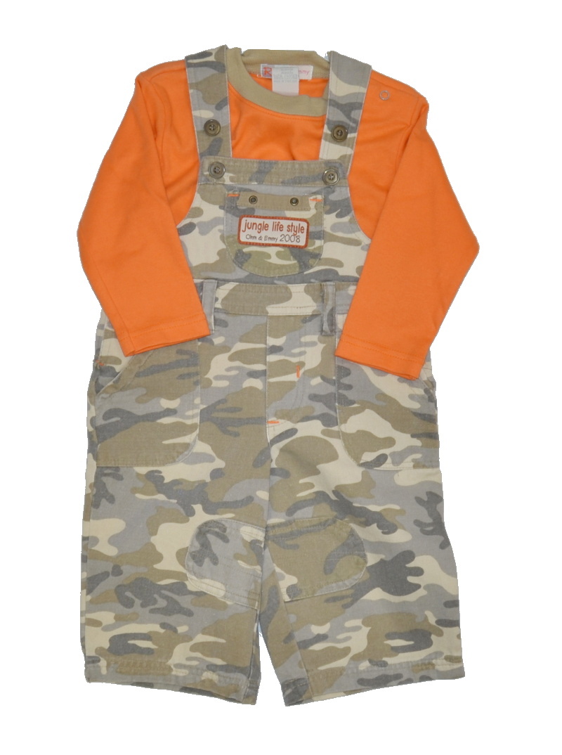 Dětský komplet maskáč velikost 80/86, obsahuje triko s dlouhým rukávem a kalhoty s nastavitelnými šráčkami v maskáčovém provedení.