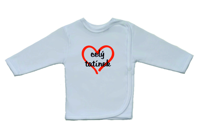 Kojenecká košilka, Gama, bílá s větším potiskem.. celý tatínek, je krásná a velmi kvalitní košilka pro miminko, zdobená textem a srdíčkem ve větším formátu. Boční zapínání na cvočky po celé délce usnadňuje oblékání košilky miminku.