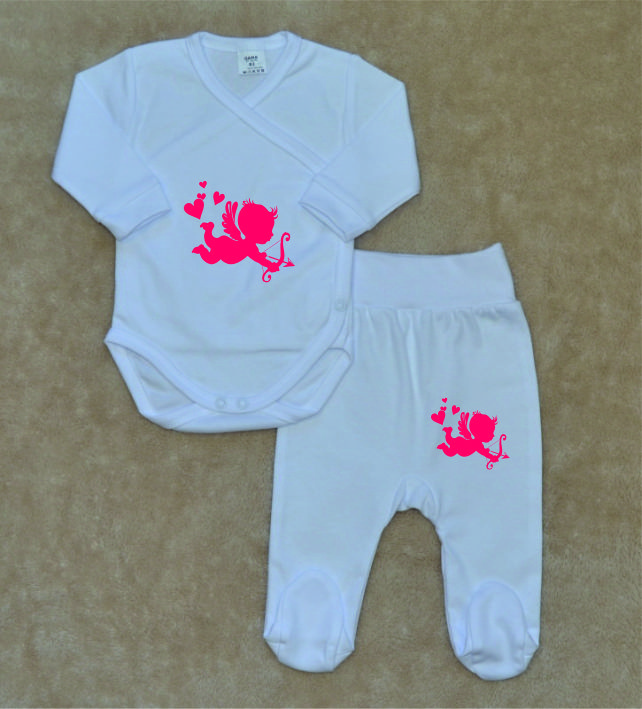 Bílá kojenecká soupravička Gama, růžový Amorek, zavinovací body+polodupačky, je krásná, vysoce kvalitní, svým potiskem decentní, 2-dílná bílá kojenecká soupravička pro miminko, která je vyrobená ze 100% velmi jemné, kojenecké, velmi příjemné, atestované bavlny, vhodné pro miminka.
