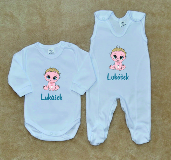 Kojenecká/dětská dvoudílná soupravička se jménem, je dodávána ve velikosti: 56 až po velikost 86