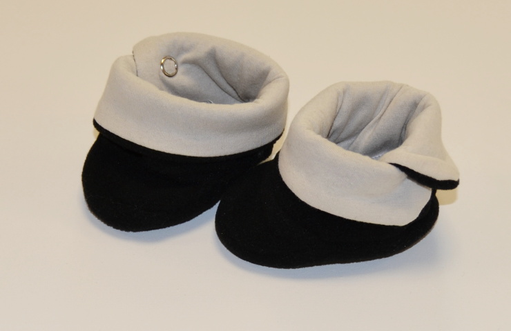 Kojenecké papučky, Dětský svět, fashion baby, černobéžové vel.0, jsou vyrobeny z velmi jemného, příjemného a hřejivého materiálu fleece s nežmolkovací úpravou a komnbinací materiálu mako, který je atestovaný pro výrobu kojeneckého a dětského oblečení.