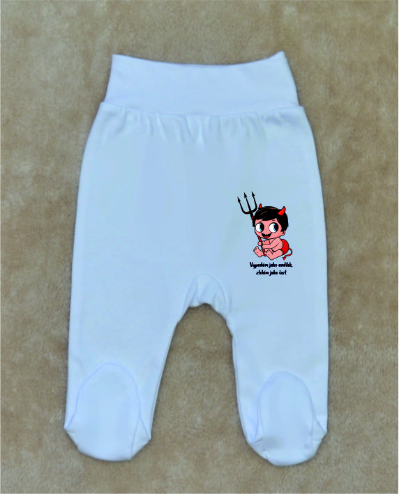 Kojenecké polodupačky pro miminko, Gama, bílé s obrázkem a českým nápisem, Vypadám jako andílek, zlobím jako čert, jsou vhodné pro miminka již od narození. Jemná, hladká, atestovaná dětská 100% bavlna je velmi příjemná a nedráždí pokožku dítěte. Dětské polodupačky jsou vyráběny v nejvyšší možné kvalitě.