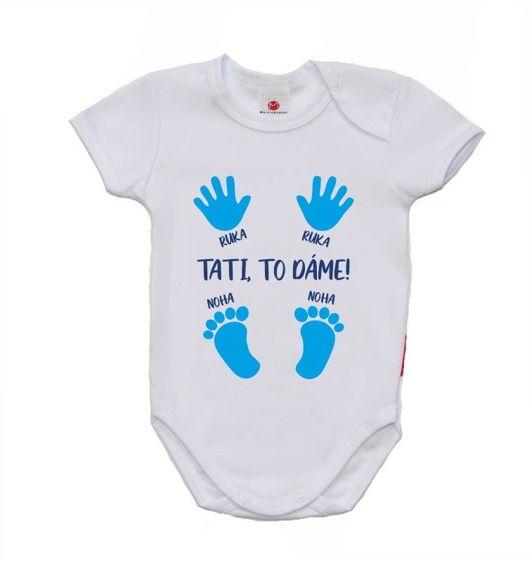 Dětské body s vtipným potiskem, Gama, krátký rukáv, Tati to dáme, je nádherné, velmi kvalitní bavlněné dětské body, které je velmi příjemné na nošení s vtipným potiskem ve velkém provedení.