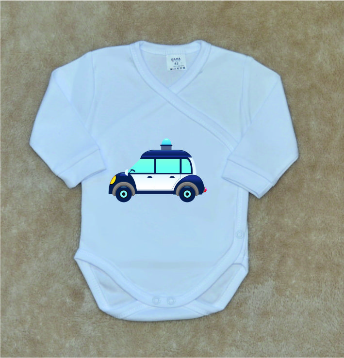 Kojenecké zavinovací body Gama, bílé s obrázkem Policie, je nádherné bavlněné kojenecké body s dlouhým rukávem, v bílé barvě a potiskem velmi kvalitního obrázku ve velkém provedení.