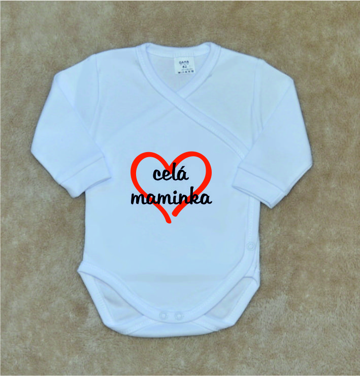 Kojenecké zavinovací body Gama, bílé s českým nápisem, celá maminka, je nádherné bavlněné kojenecké body s dlouhým rukávem, v bílé barvě a potiskem velmi kvalitního obrázku ve velkém provedení.