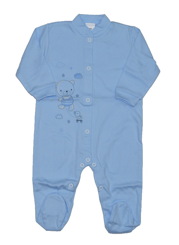 Dětský bavlněný overal, Gama, modrý Bears velikost 74, je krásný, kojenecký/dětský bavlněný overálek velmi vhodný pro miminko s tištěnými bezftalátovým, obrázkem. Kojenecký overal je vyroben ze 100% bavlny. Overal pro miminko má drukové (patentkové) baby zapínání po celé délce overálku pro velmi snadné oblékání a pohodlné přebalování