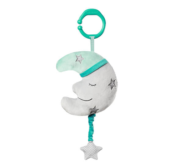 Plyšová hrající hračka, Baby ono, melodický měsíček, je vyrobená z atestovaných materiálů určených pro děti do 3 let. Hračka je učena k přidělání na postýlku, kočárek či autosedačku a vzhledem k faktu, že neobsahuje žádné malé součástky, může si sní dítě i přímo hrát.
