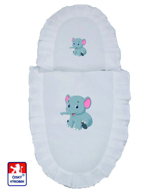 Set do kočárku pro panenky Dětský svět bílé s obrázkem sedící slon