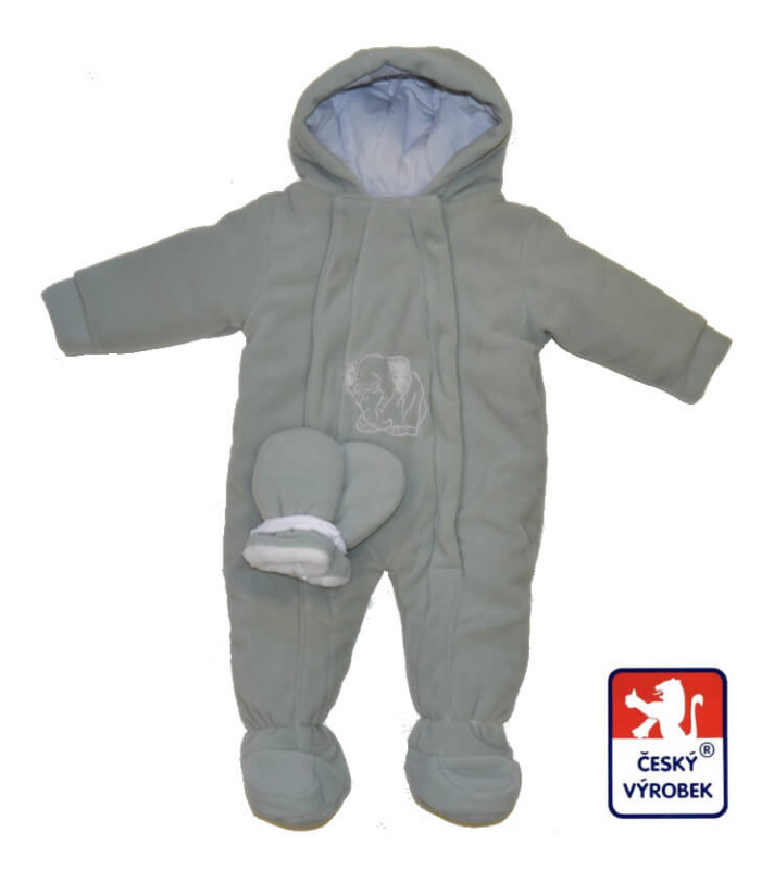 Zimní kojenecká kombinéza, Dětský svět, světle šedá s výšivkou slona a rukavicemi velikost 86Skladem v e-shopu883 Kč/ ks730 Kč bez DPH