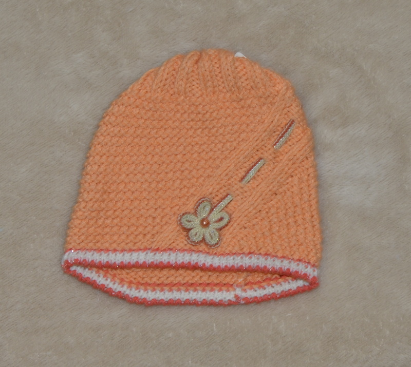 - Dívčí pletená čepička, oranžová s květinou Výprodej