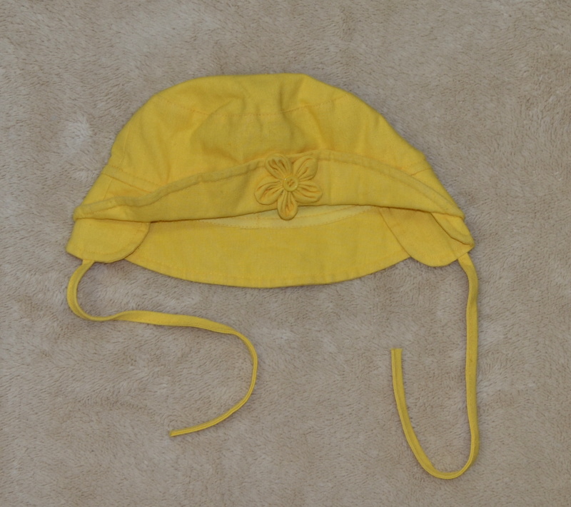 - Dětská čepička/klobouček, žlutý s kytkou Výprodej