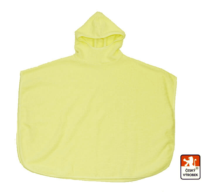 Dětské pončo má barvu: žlutou ( další možné barvy bílá, modrá, růžová a krémová)