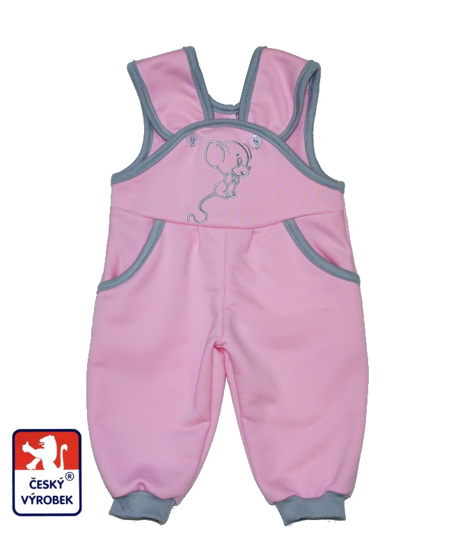 Dětské tepláčky s laclem světle růžové s myškou jsou výrobkem prémiové kvality z našich dílen Dětský svět Fulnek