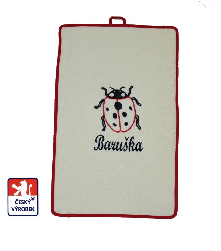- Dětský ručník do školky Dětský svět krémový s beruškou a jménem