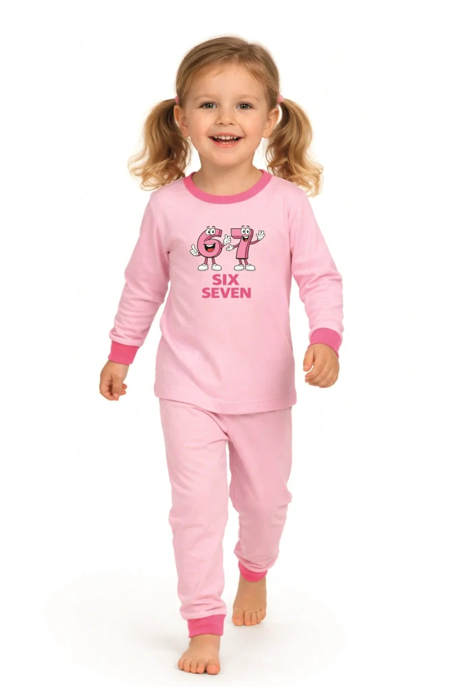 Pohodlné dívčí pyžamo Dětský svět Six seven! v růžové barvě je ideální volbou pro klidný spánek i domácí pohodu. Díky příjemnému a prodyšnému materiálu je pyžamo hebké na dotek, šetrné k dětské pokožce a vhodné pro každodenní nošení. Moderní potisk Six seven! dodává pyžamu hravý a stylový vzhled, který si děvčata rychle oblíbí 😴✨