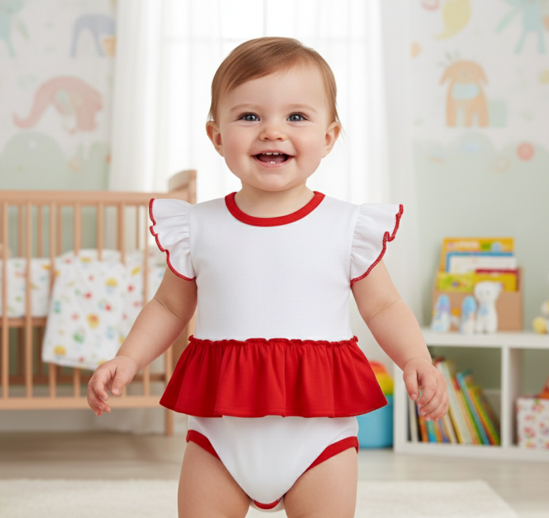 Dětské body se sukýnkou červeno-bílé pro holčičky je ideální volbou pro rodiče, kteří hledají kojenecké body s volánkem a stylové kojenecké body s volánky, které spojuje pohodlí, praktičnost a krásný vzhled. Toto dívčí body se sukýnkou zaujme na první pohled a zároveň poskytne maximální komfort při každodenním nošení.