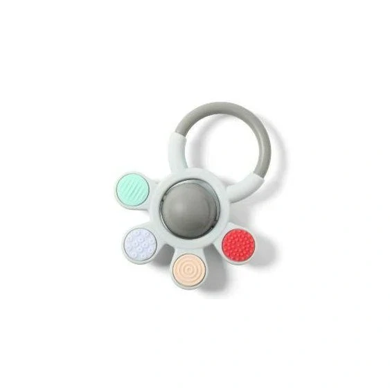 Součástí kousátka je chrastítko, které při pohybu vydává jemné zvuky. Ty přitahují pozornost dítěte, podporují rozvoj sluchu a motivují miminko k aktivní hře.