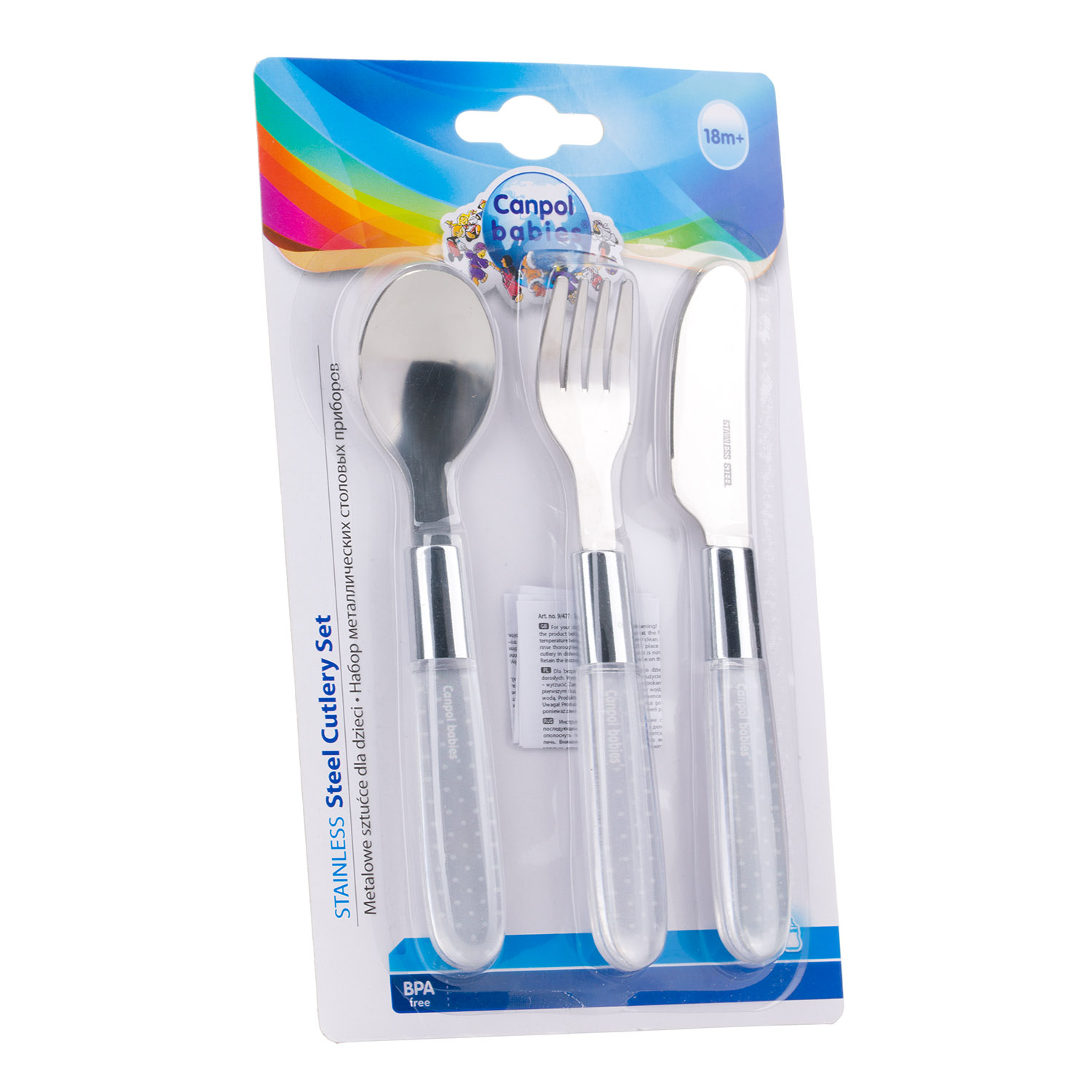 Speciálně tvarovaný dětský kovový příbor (nůž, vidlička, lžička) je určen dětem, které se učí samy jíst. Zaoblené tvary nedráždí cilivé dětské dásně a jsou pro dítě bezpečné. Příbor je vyroben z kvalitní nerezavějící oceli. Doporučujeme pro děti starší 18-ti měsíců.