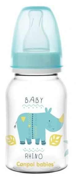 Lahev Canpol babies o objemu 120 ml je vyrobena z kvalitního polypropylenu, který neobsahuje BPA. Nepraská, je bezpečná, lehká, praktická a barevná. Lahev se dodává ve třech variantách v designu AFRIKA. Splňuje nejvyšší požadavky kvality. Ve standardním provedení obsahuje silikonovou kulatou savičku s pomalým průtokem.